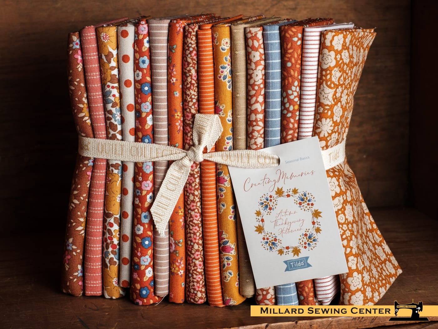 Tilda’s Creating Memories Collection AUTUMN Fat Quarter Bundle includes 16 20in x 22in fabric pieces of the collection prints and wovens. Tilda Fabric’s Creating Memories Collection are 100% cotton prints and wovens designed by Norwegian designer Tone Finnanger. The Fat Quarter Bundle is double-folded so you can easily see all the fabrics. The Autumn, Thanksgiving, Halloween color theme contains an array of ginger, saffron, brown and rust-colored fabrics with a hint of blue-grey, khaki and toffee. In addition to autumnal projects, this collection can of course also be useful all year around for any project where a warm color palette is needed.