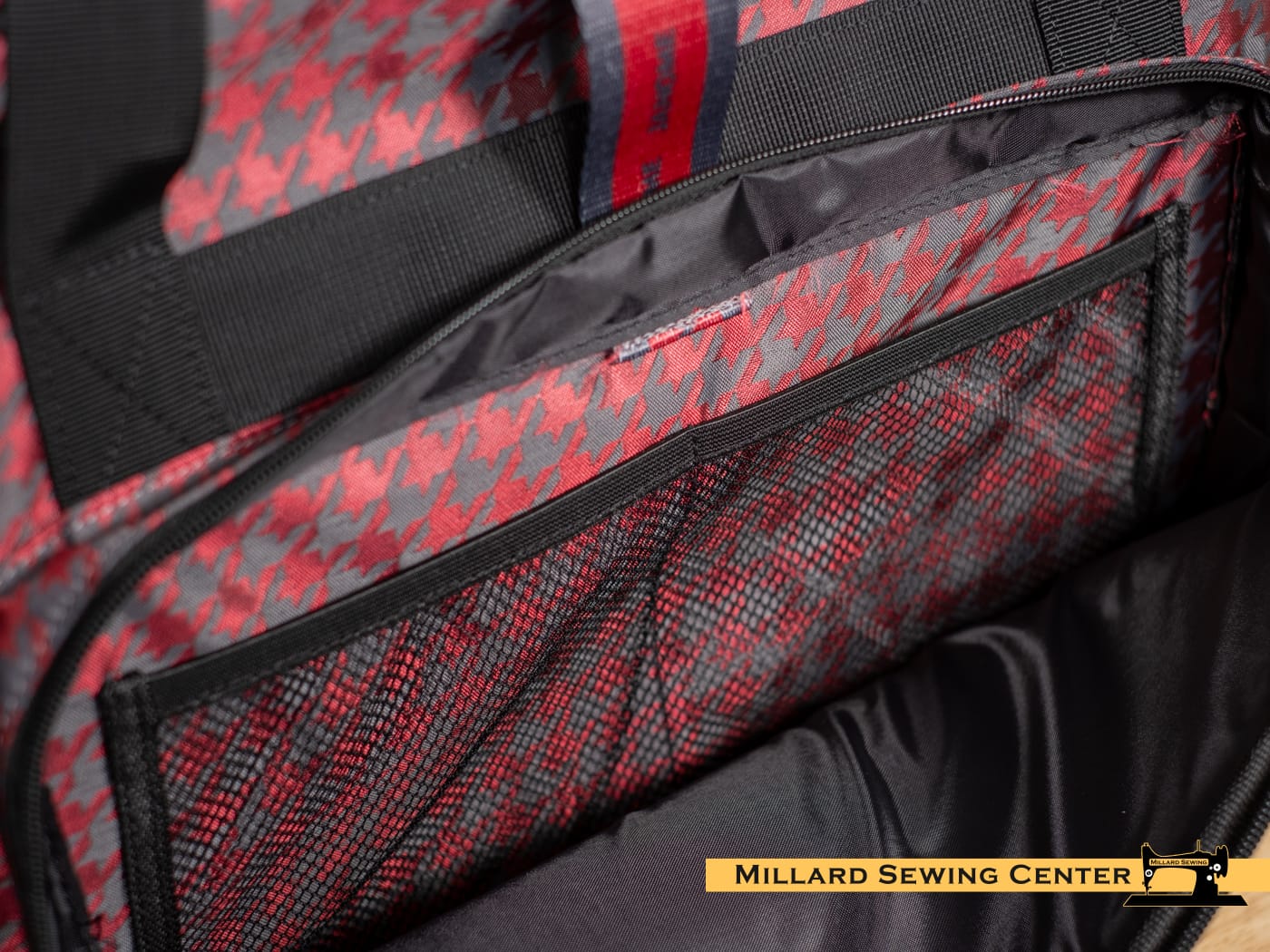 Black Sewing Machine Tote with Red Check Design by Janome