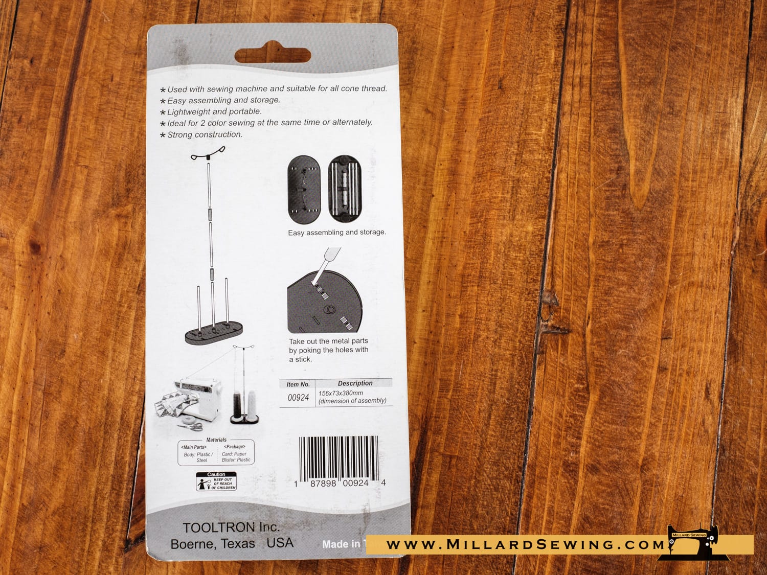This compact, lightweight thread stand is portable, so you can take it with you.