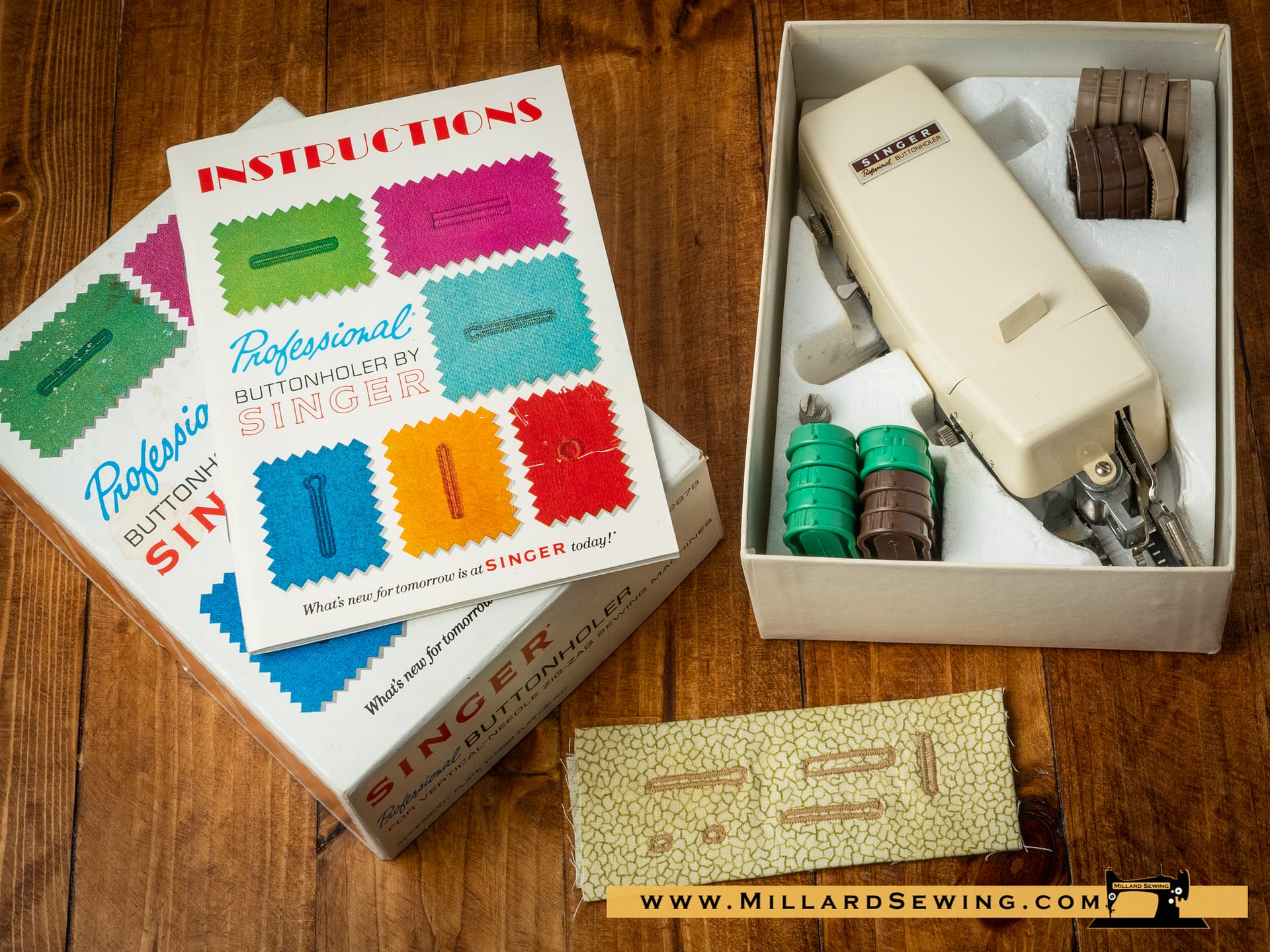 The Singer Model V102878 is designed for use on Vertical Needle Singer Low Shank machines with Zig Zag.ย It includes 20 templates: straight buttonholes, eyelet end buttonholes, eyelets, and bound buttonholes. Sizes range from 1/2″ to 1 1/2″