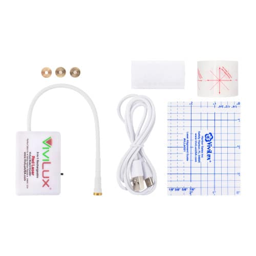 Our 3-in-1 Rechargeable Laser System attaches to your machine with the included hook and loop tape and features a bright Laser head upon which youโll screw one of 3 heads that offer you either a crosshair laser, a straight line or a handy dot, perfect for making freehand stitching designs! Go ahead – add it to your cart. You deserve it!