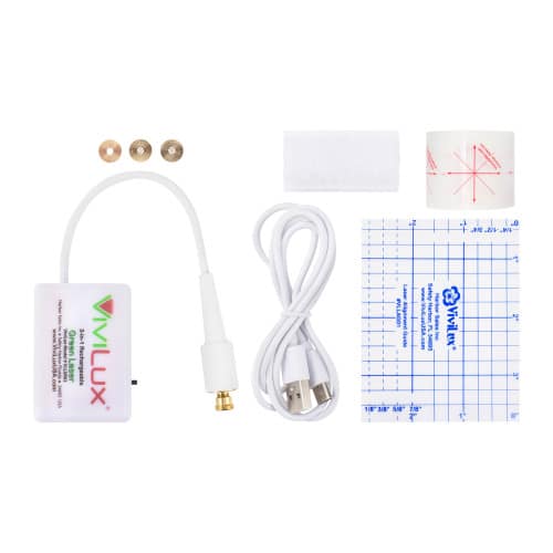 The ViviLux 3-in-1 Rechargeable Laser System is unique in the Sewing / Quilting market space and will be the new MUST HAVE notion. Based on the same super compact rechargeable battery platform as our ViviLux(R) Super Bright Flexible Craft Light, the 3-in-1 Rechargeable Laser is the only positionable rechargeable battery laser light on the market. Now with eye-friendly GREEN LASER light. The 3-in-1 Rechargeable Laser has replaceable heads, giving you a 1mm laser dot, 1mm laser line, and laser cross-hairs, all with the simple screw-on heads. **Adhesive Magnet**