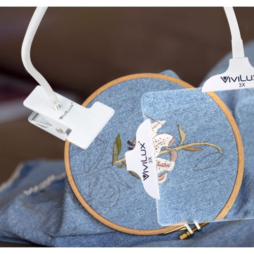 The ViviLux 6″ x 4″ Optical Grade 3x Distortion-Free Magnifier will be your go-to accessory when doing closeup detail work, like sewing, cross-stitch, needlework, or just reading. The large 6″x4″ lens with powerful 3x magnification from edge to edge will allow you to see more while preventing eye strain. The Clip-On base allows you to use anywhere you affix the Magnifier to a hoop or a table top.