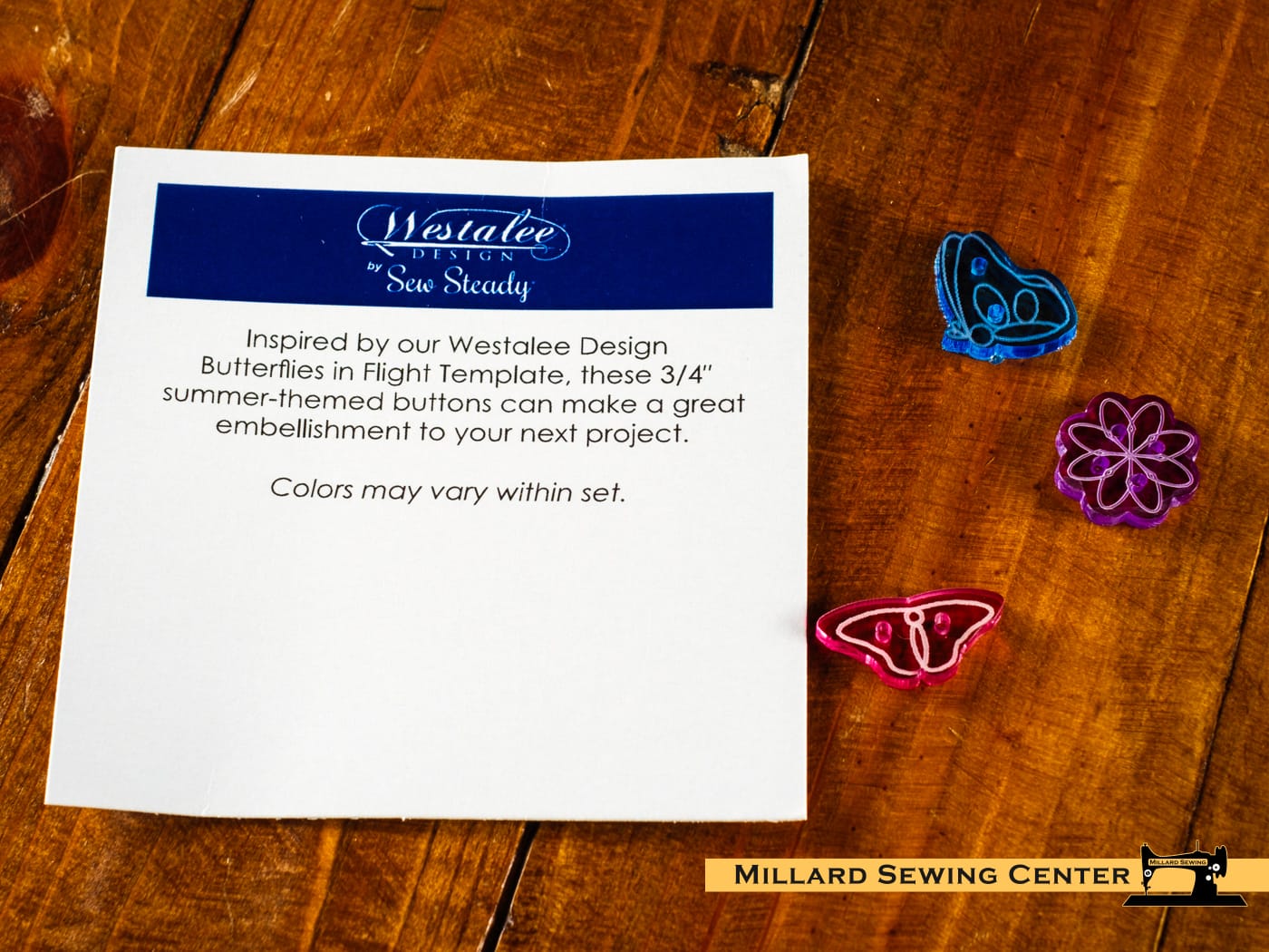 Inspired by ourย Westalee Design Butterflies in Flight Templateย and ourย Westalee Design 3โณ & 5โณ Spin-e-fex #7 Template, these 3/4โณ summer-themed buttons were included on ourย Summer 2025 Elevate Club Boxย education.