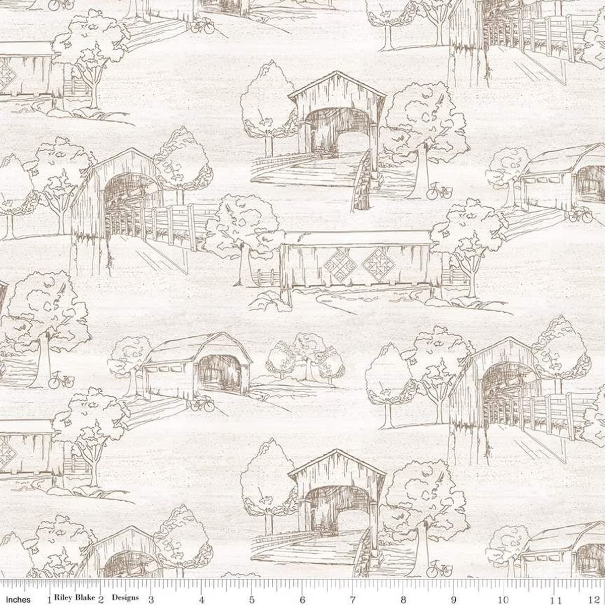 Covered Bridges in Spring by Tara Reed for Riley Blake Designs is great for quilting, apparel and home decor. This print features tone-on-tone covered bridge scenery.