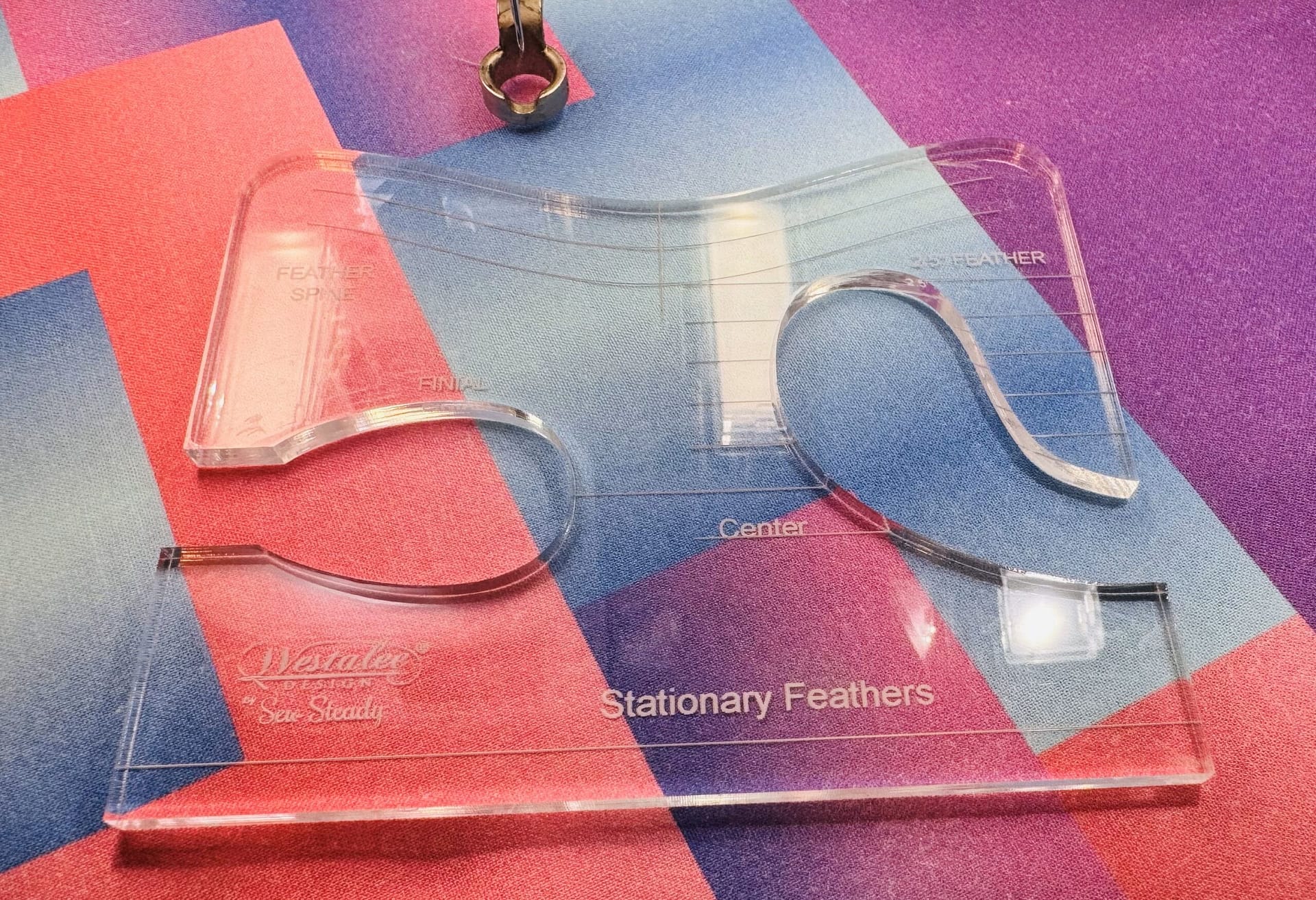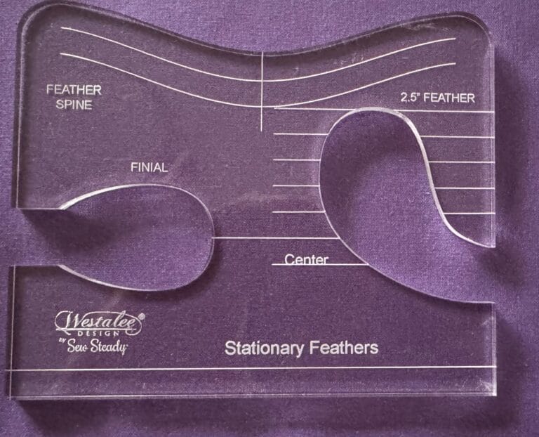 This combo Template gives a 2-1/2″ stitched feather design, a finial and feather spine design.