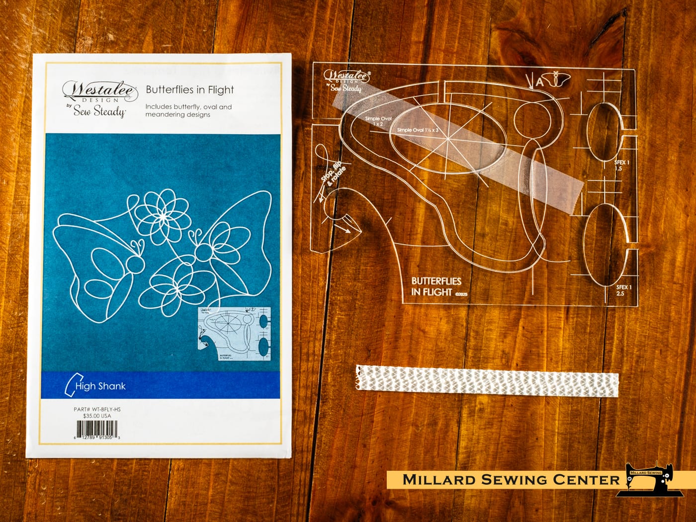 This Template, originally introduced as part of the 2025 Summer Elevate Box Club, combines a butterfly design with the Mini Spin-e-fex 1, 2 sizes of Oval and an edge to edge design. Stitch a butterfly in flight or with a full wingspan, embellish the wings with the Spin-e-fex and Ovals, and give it flight using the edge to edge option.
