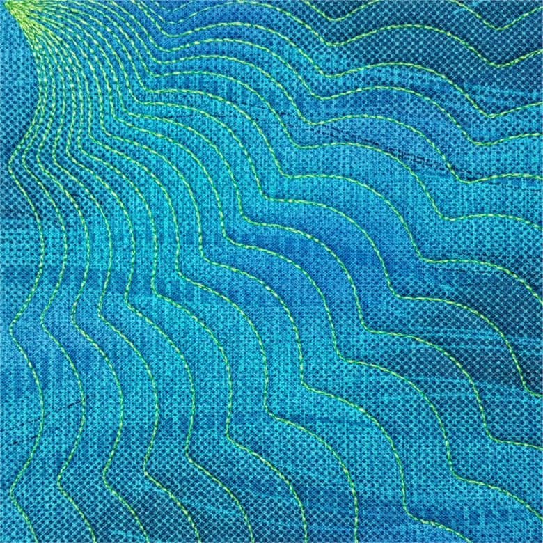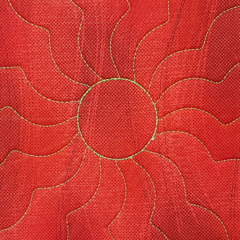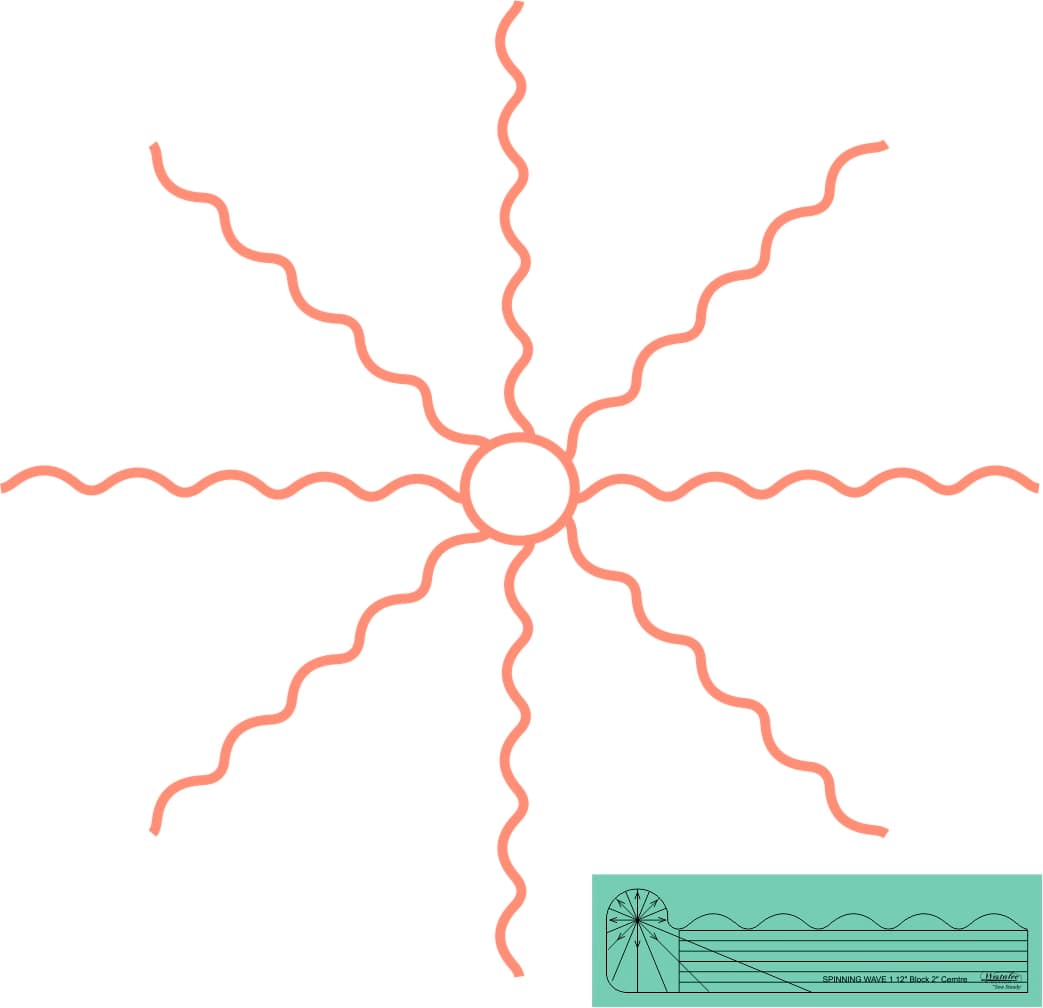The Spinning Wave Templates will stitch out to fill a 12″ block with a 2″ centre, Template can be flipped for effect.