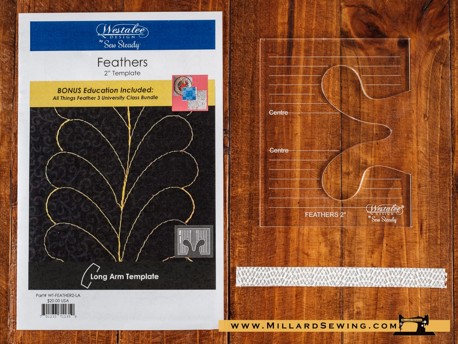 Quilting feathers can be difficult, but with the Feather Templates you can quilt straight feathers -feathers on a wavy spine – feathered plumes.