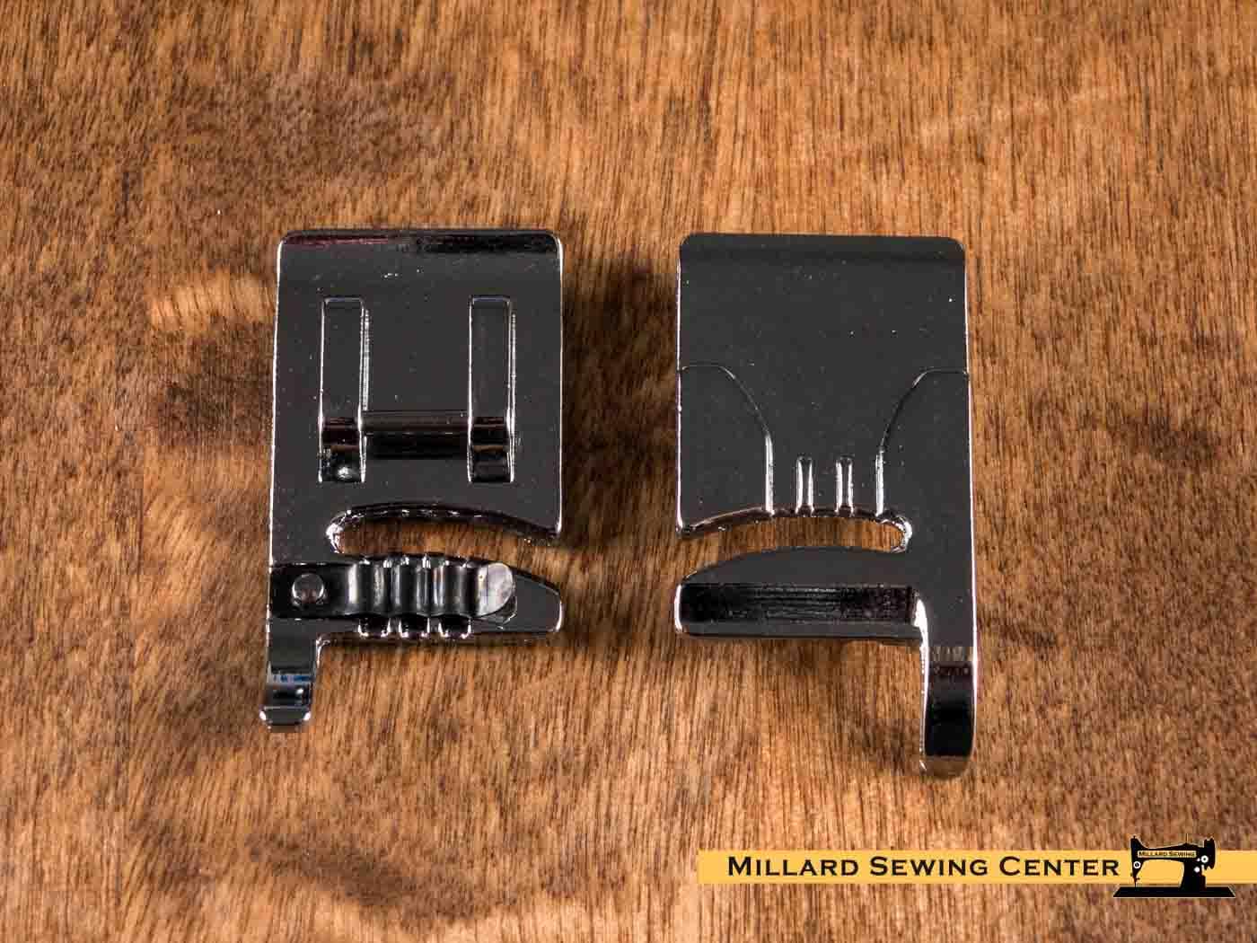 Attaching decorative cords and threads is a snap. This foot eliminates tangling to ensure that cords lie flat and perfectly parallel to each other. The cording foot controls threads so both hands can guide the fabric. Use this foot to create decorative stitching over cording on single and double layers of fabric.