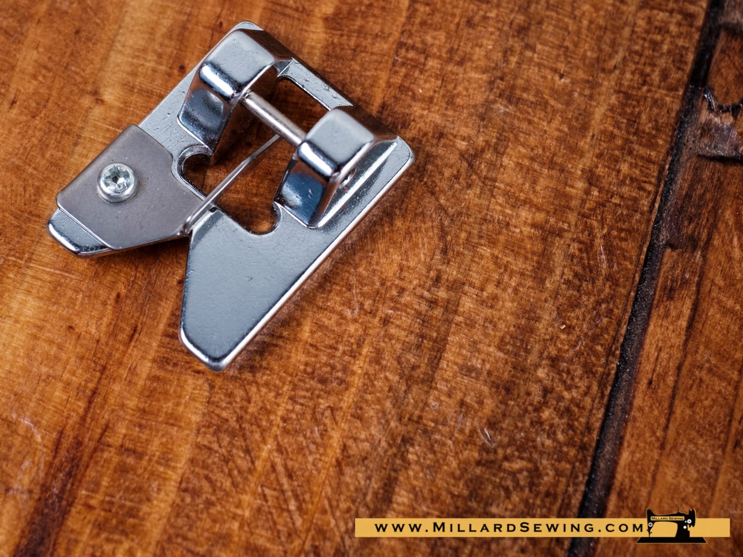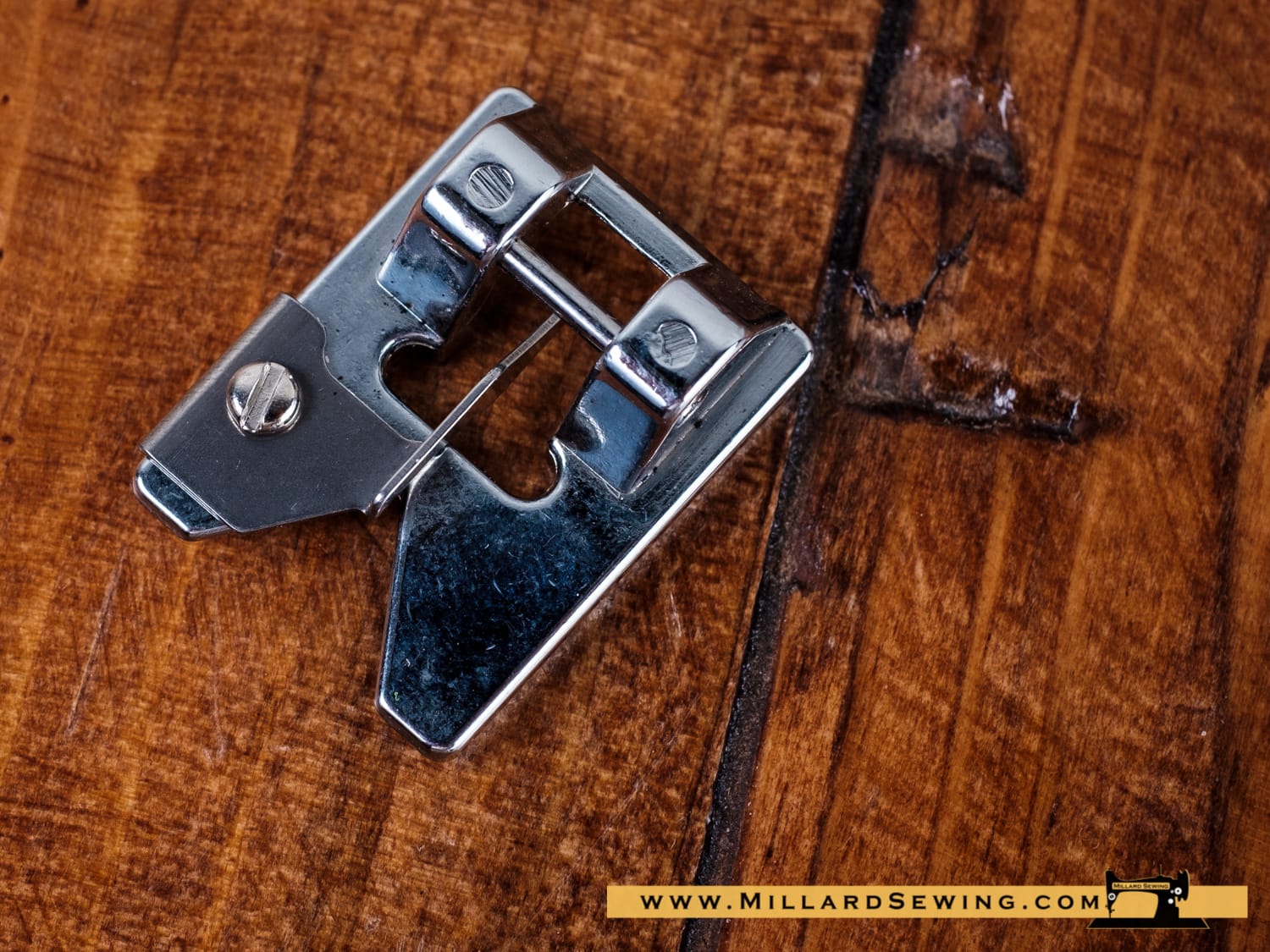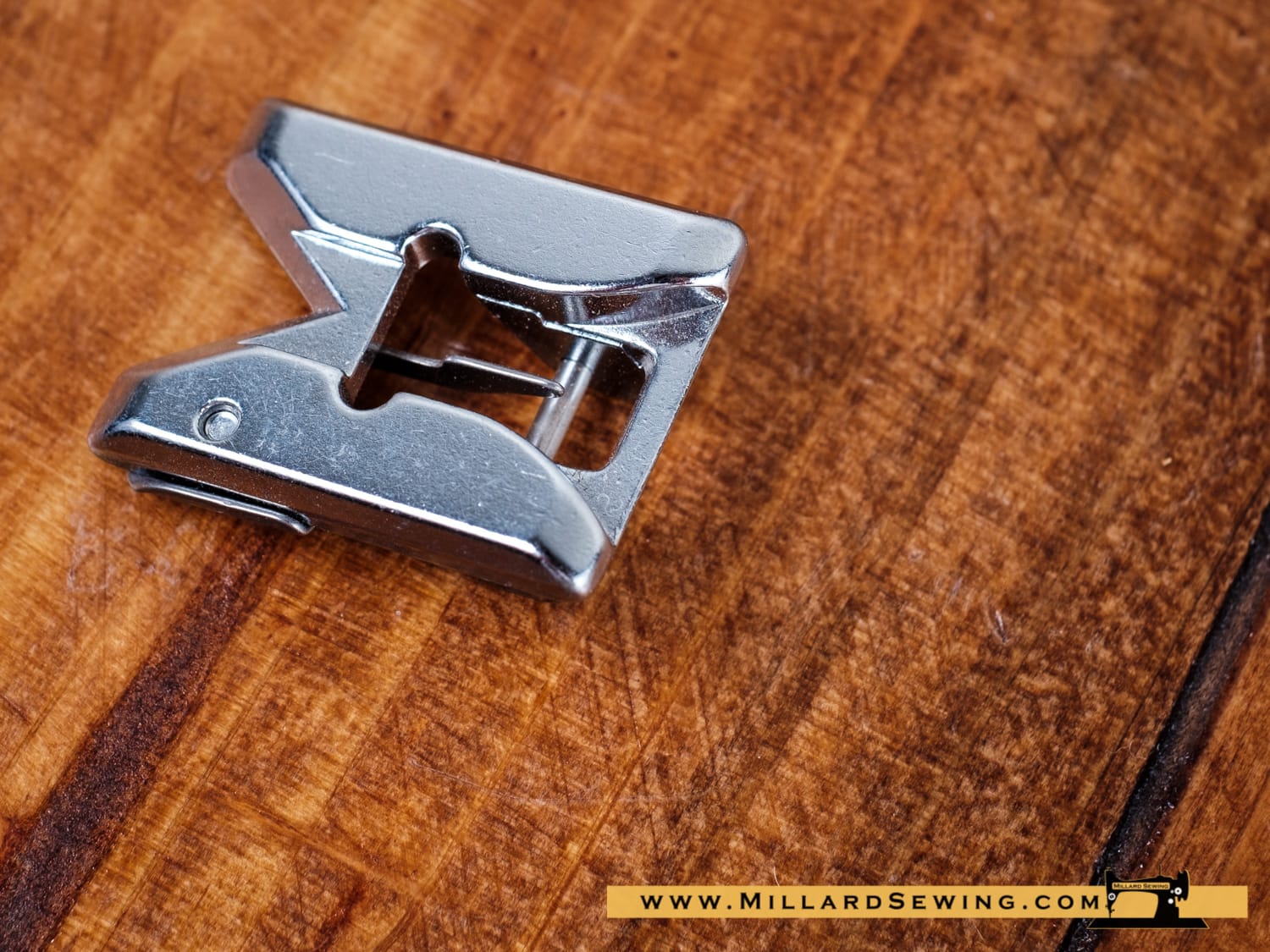 The divider in the center of the foot creates a large loop when sewing a zig zag stitch. After sewing simply cut the loop close to one side to create a fringe.