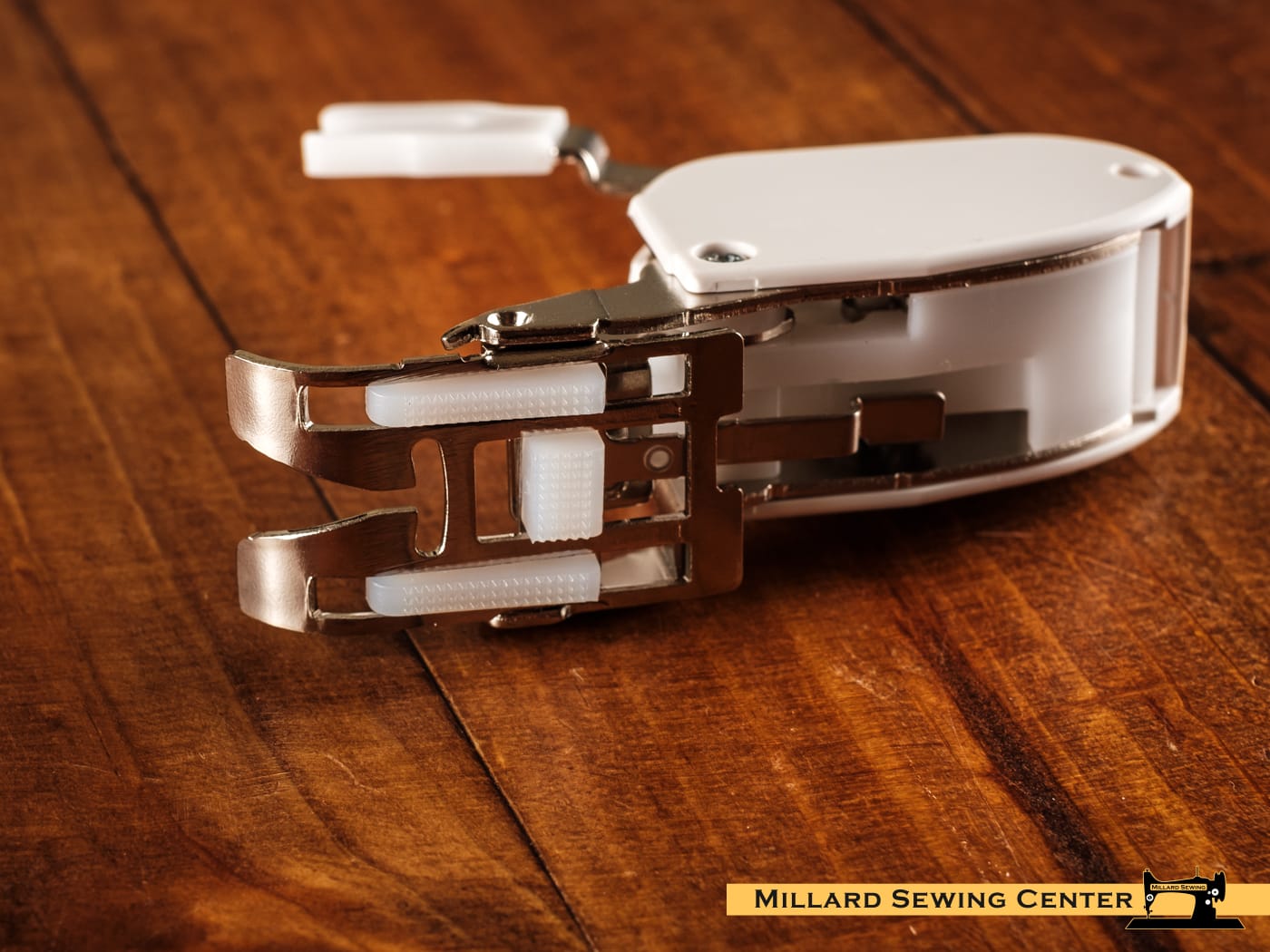 If you’ve ever struggled to feed your fabric through a sewing machine, you need a Walking Foot. Also known as a “Dual Feed Foot” and “Even Feed Foot”, the Walking Foot is an essential tool for any sewer. This foot has built-in feed dogs that grip your fabric for better control. Sewing multiple layers of fabric professionally and with ease.