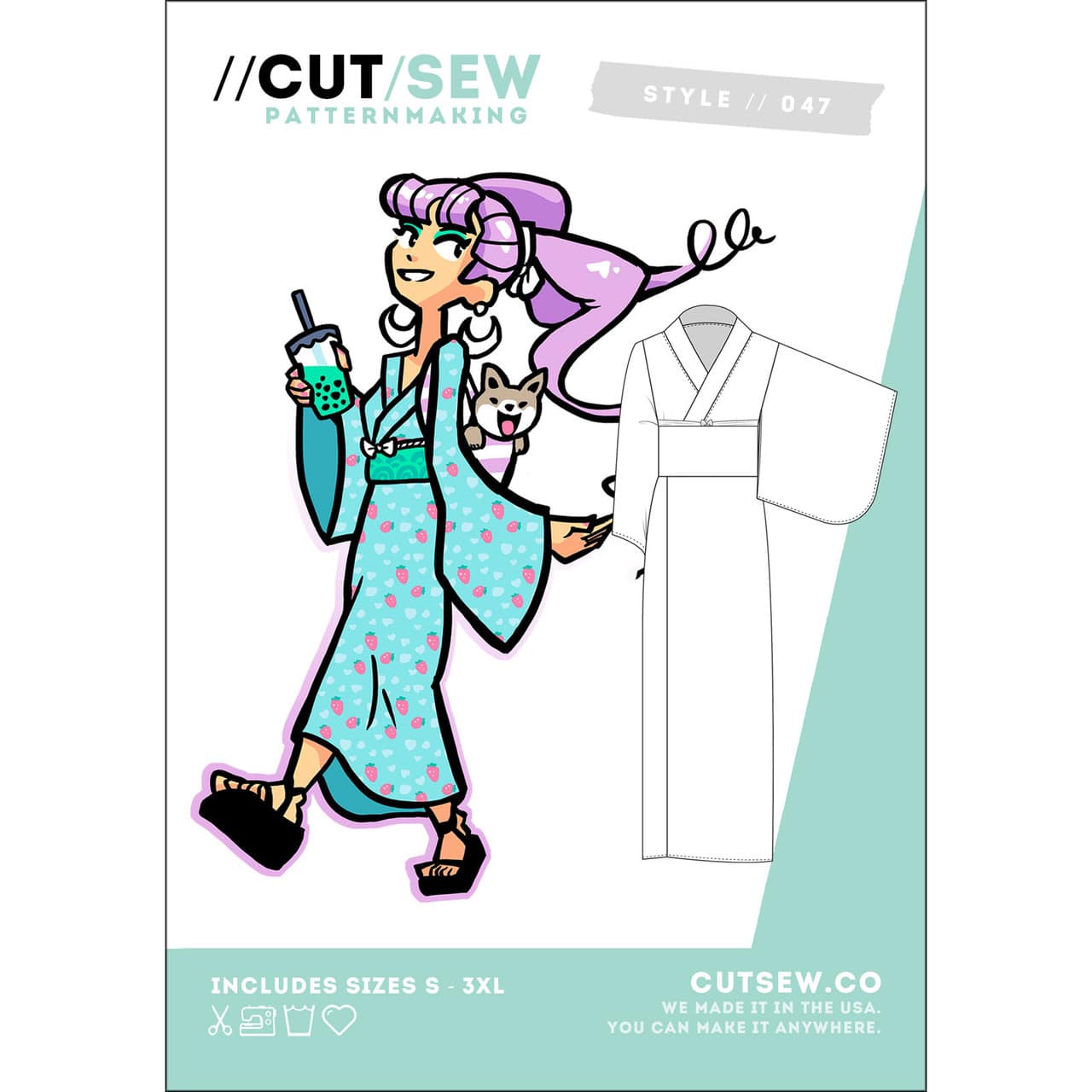 You ever just roll up to a summer festival 30 minutes late with a bubble tea? Inspired by traditional yukata construction, this pattern features pocket sleeves to store all your goodies in, a full length obi, and two under ties. Made to be one size fits most in both standard and plus sizes, you don’t have to worry about sizing when sewing and can instead adjust the fit when worn using the ties & obi.